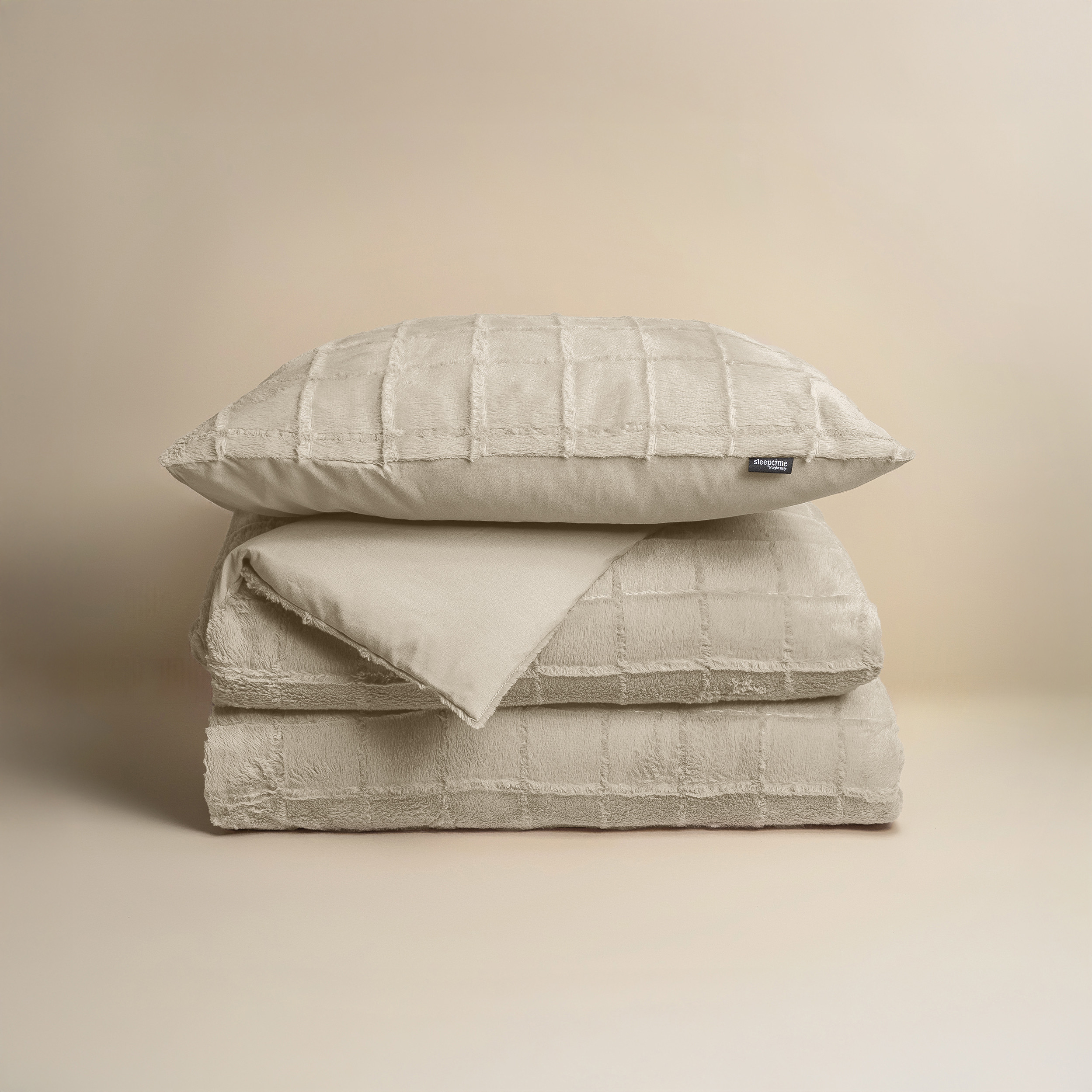 Faux Fur Check Beige 140×200/220