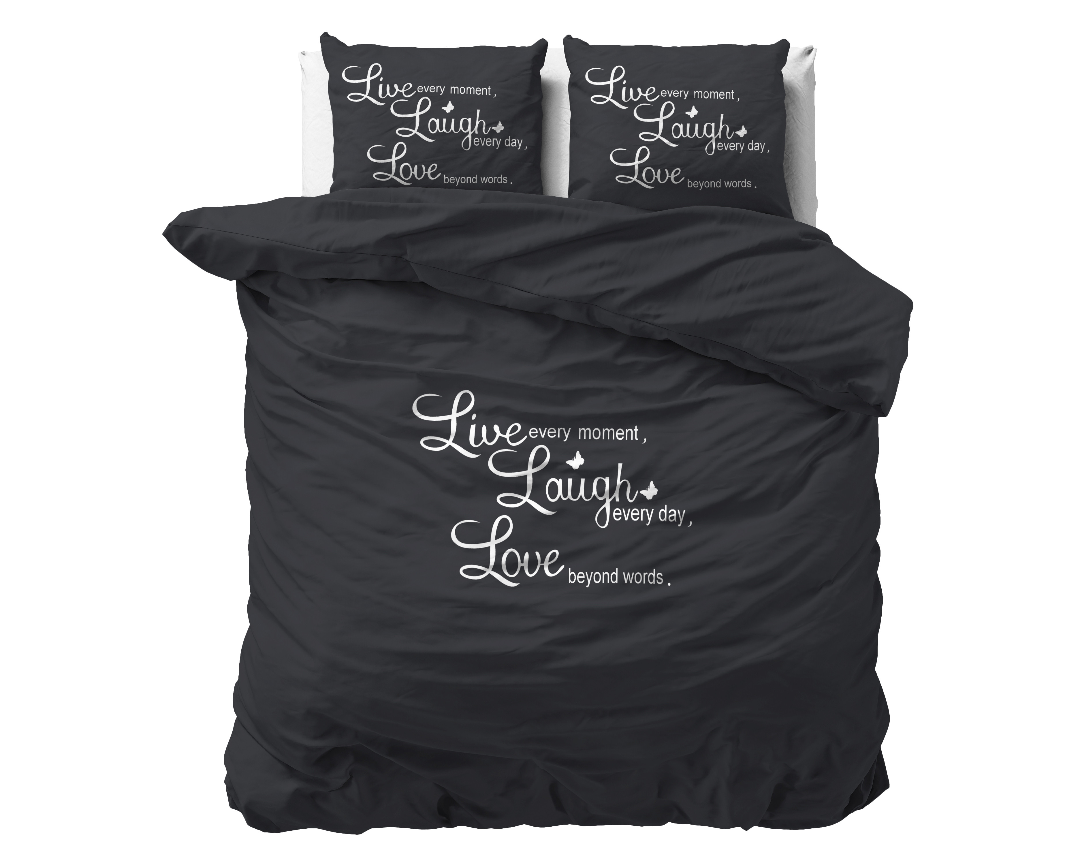 Categorieën: Dekbedovertrekken, laugh and love Antraciet, Live