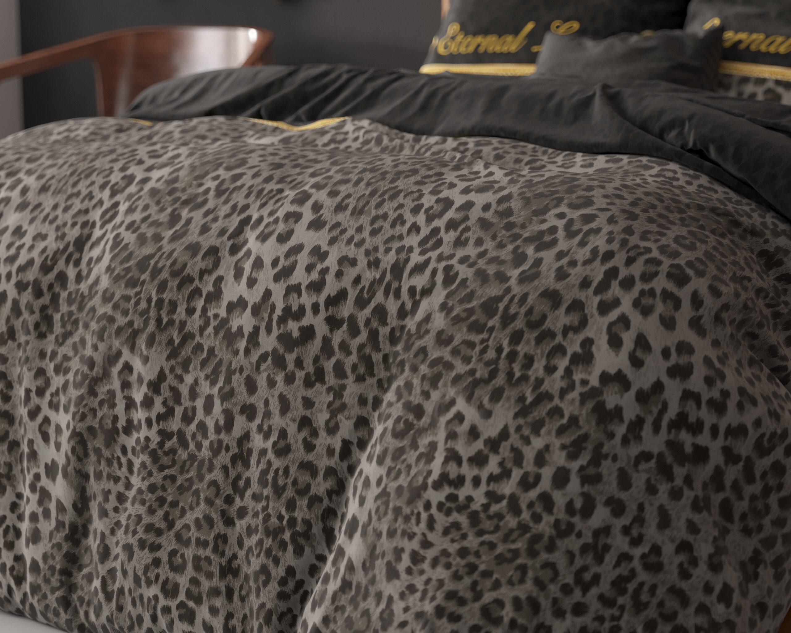Dit mooie en lekker zachte Sleeptime Elegance Eternal Love-dekbedovertrek voegt een vleugje romantiek toe aan je slaapkamer. Met dit overtrek worden jij en je partner elke ochtend vrolijk wakker! Het dessin bestaat uit een stoere dierenprint en de woorden ‘Eternal love’. De achterzijde is effen zwart voor een strakke omslag, of als je even genoeg hebt van de print aan de voorzijde. De meegeleverde slopen zijn eveneens voorzien van het mooie dessin. Dit dekbedovertrek heeft een totale lengte van 220 cm en kan probleemloos worden afgesloten met de handige drukknopen aan de onderzijde.